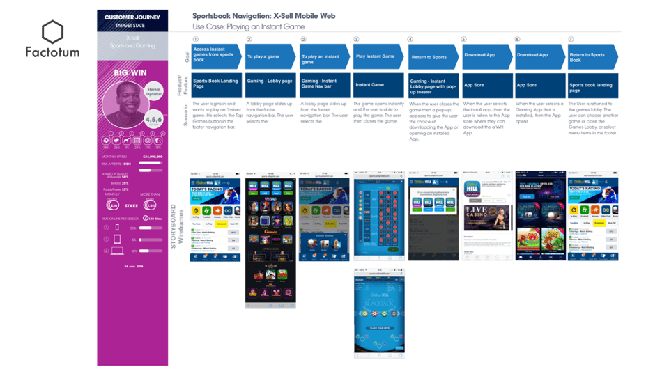 In 2016 WilliamHill Online undertook an ambitious ‘lift and shift’ of its online brand and its range of verticals; from sports book to gaming. Rather than having a complimentary cross-selling relationship between sports betting and gaming there were significant problems for customers wanting to switch between verticals, products and destinations with many broken journeys resulting in high-drop off rates and frustration.